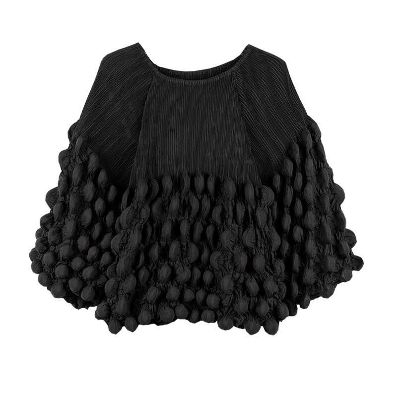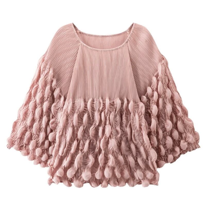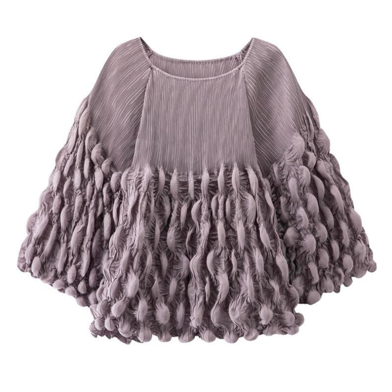 女性らしいシルエットと、存在感あるデザインが魅力の一枚。