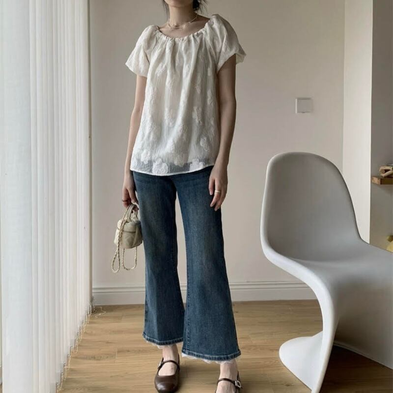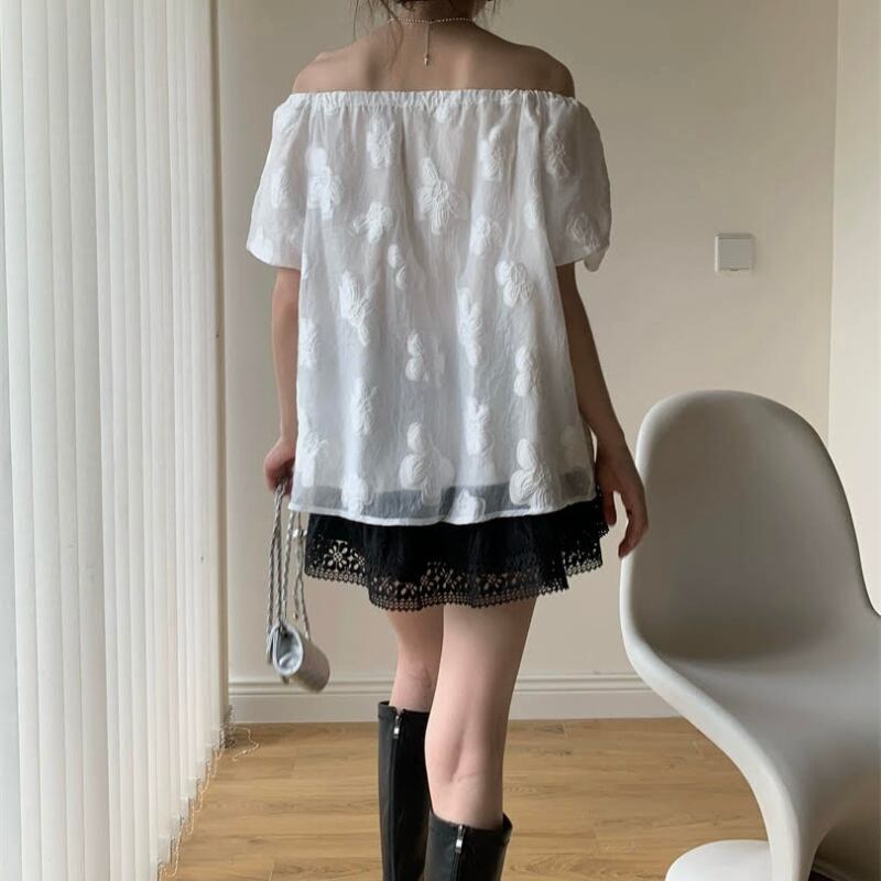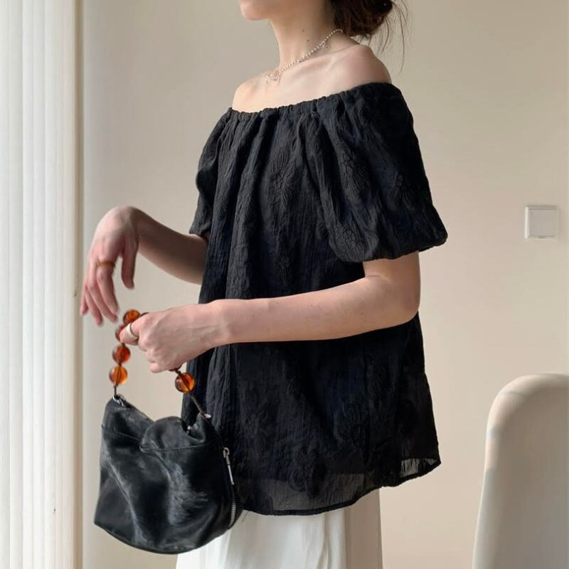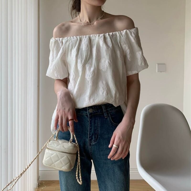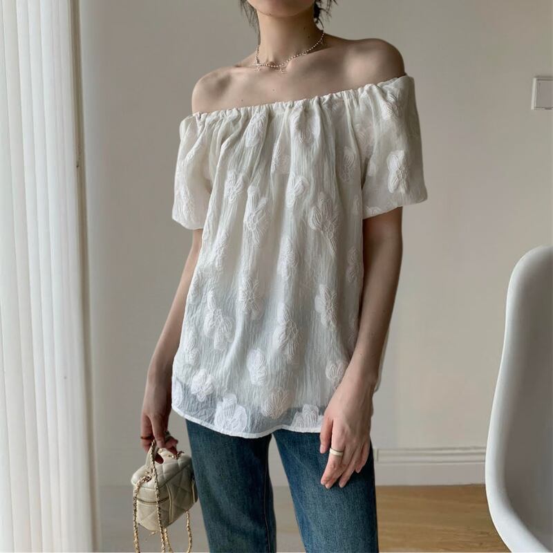 ジャガードフラワーオフショルシフォンブラウス R01148