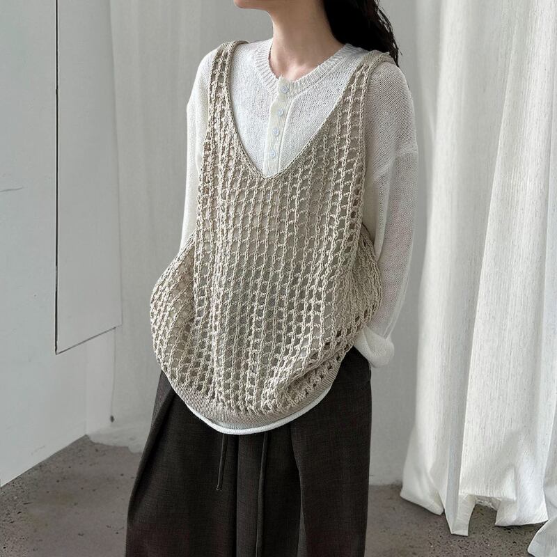 インナー使いで、トレンド感あるレイヤードスタイルが、ロングシーズン楽しめる一枚。
