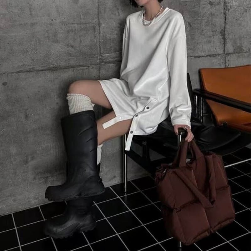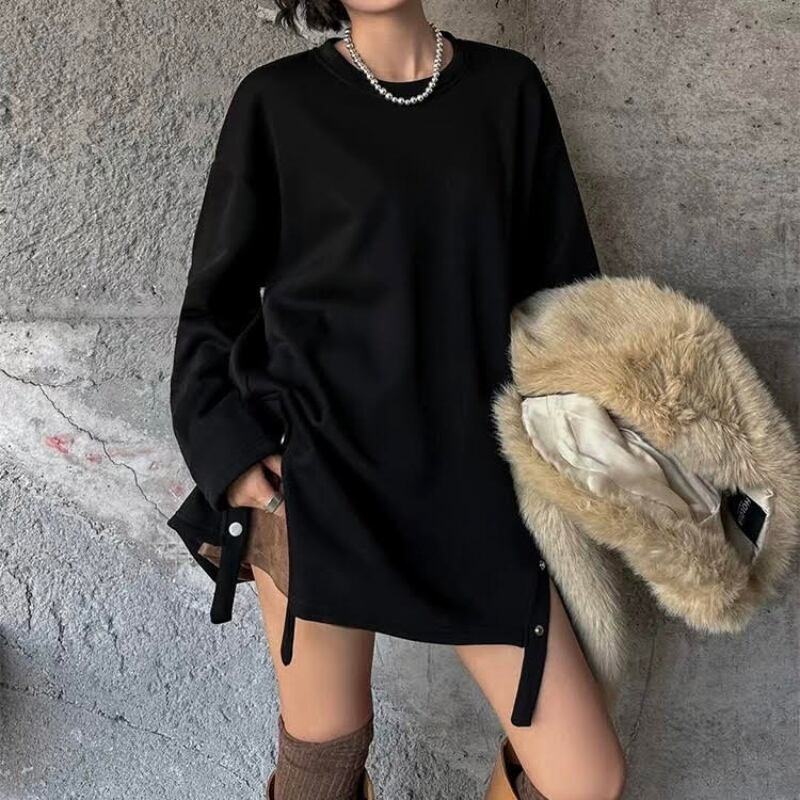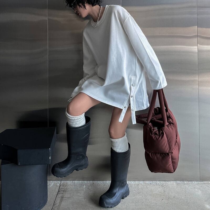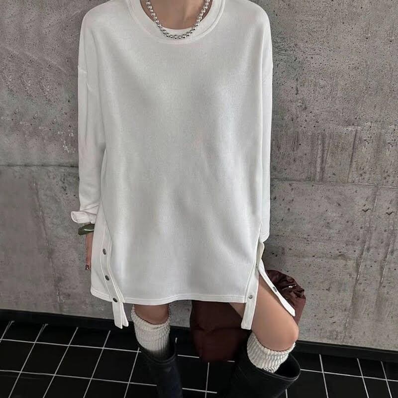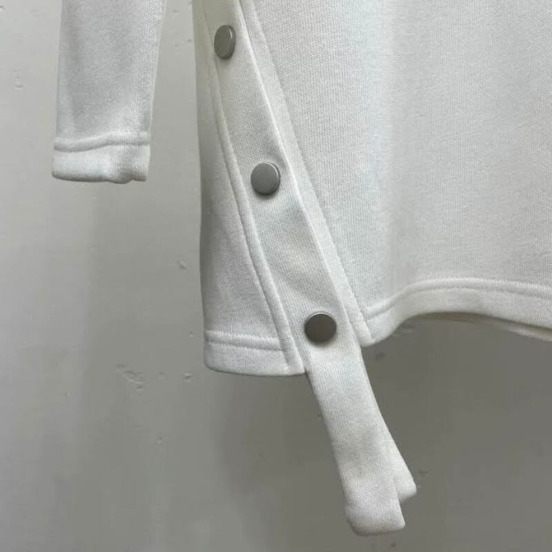 モード感漂うサイドカットデザインと、ゆったりしたシルエットが魅力の一枚。