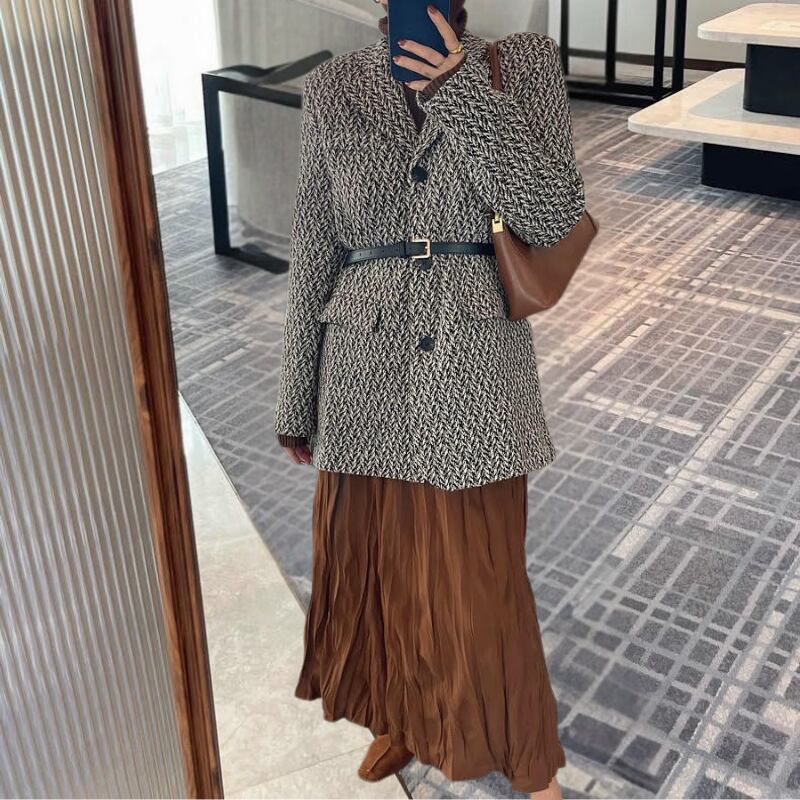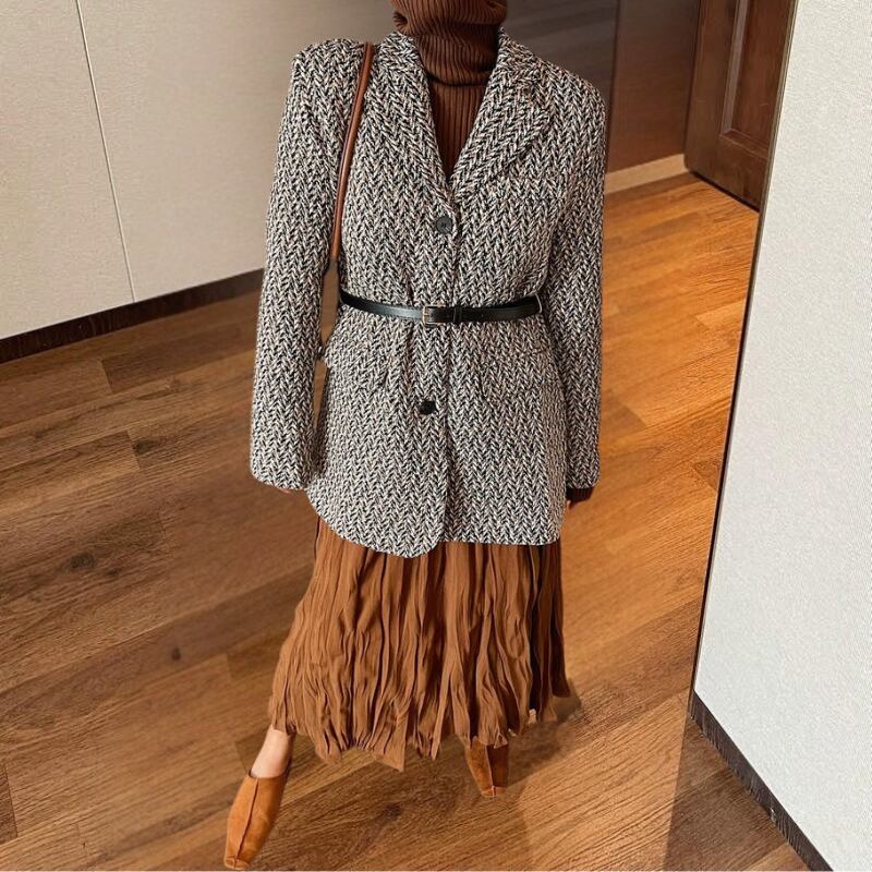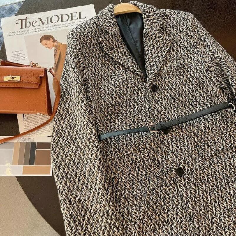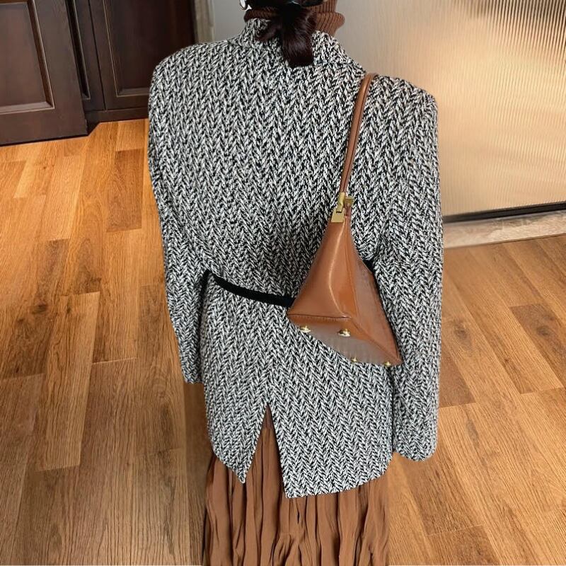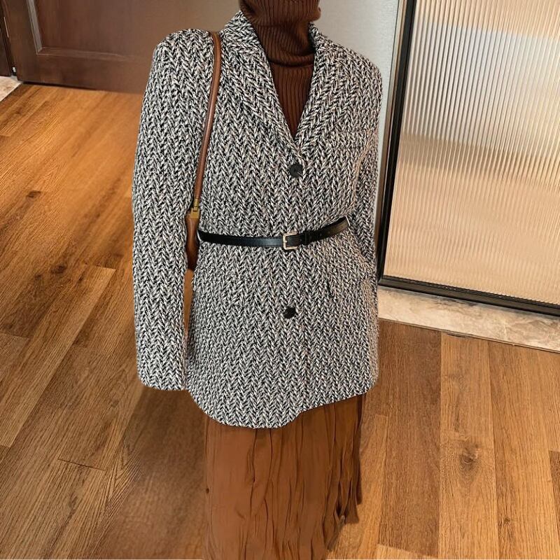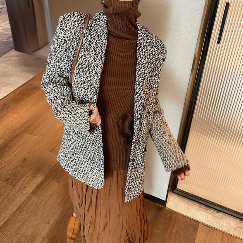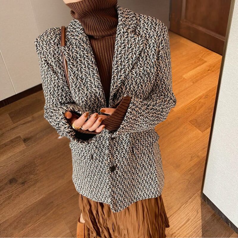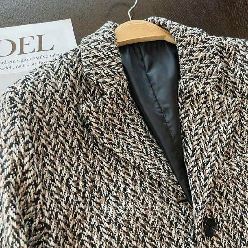 クラシカル感を演出する、ヘリンボーン生地が魅力のテーラードジャケット。