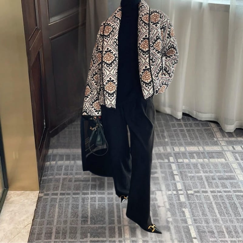シンプルなコーディネートに重ねるだけで、ひとくせある都会的なスタイリングが完成します。