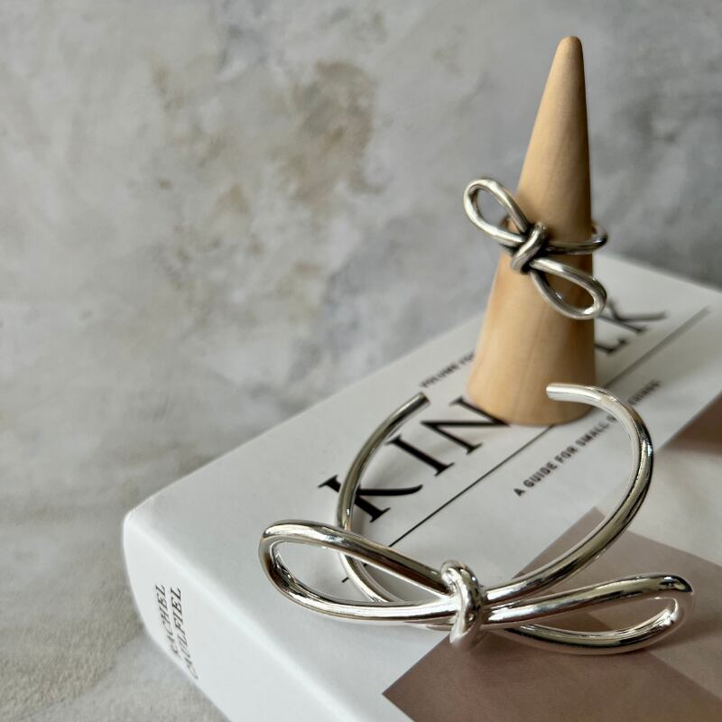 同じくリボンモチーフがほどこされたbangle【R03】商品とお揃いで重ね付けしても、上品に可愛く仕上がります。