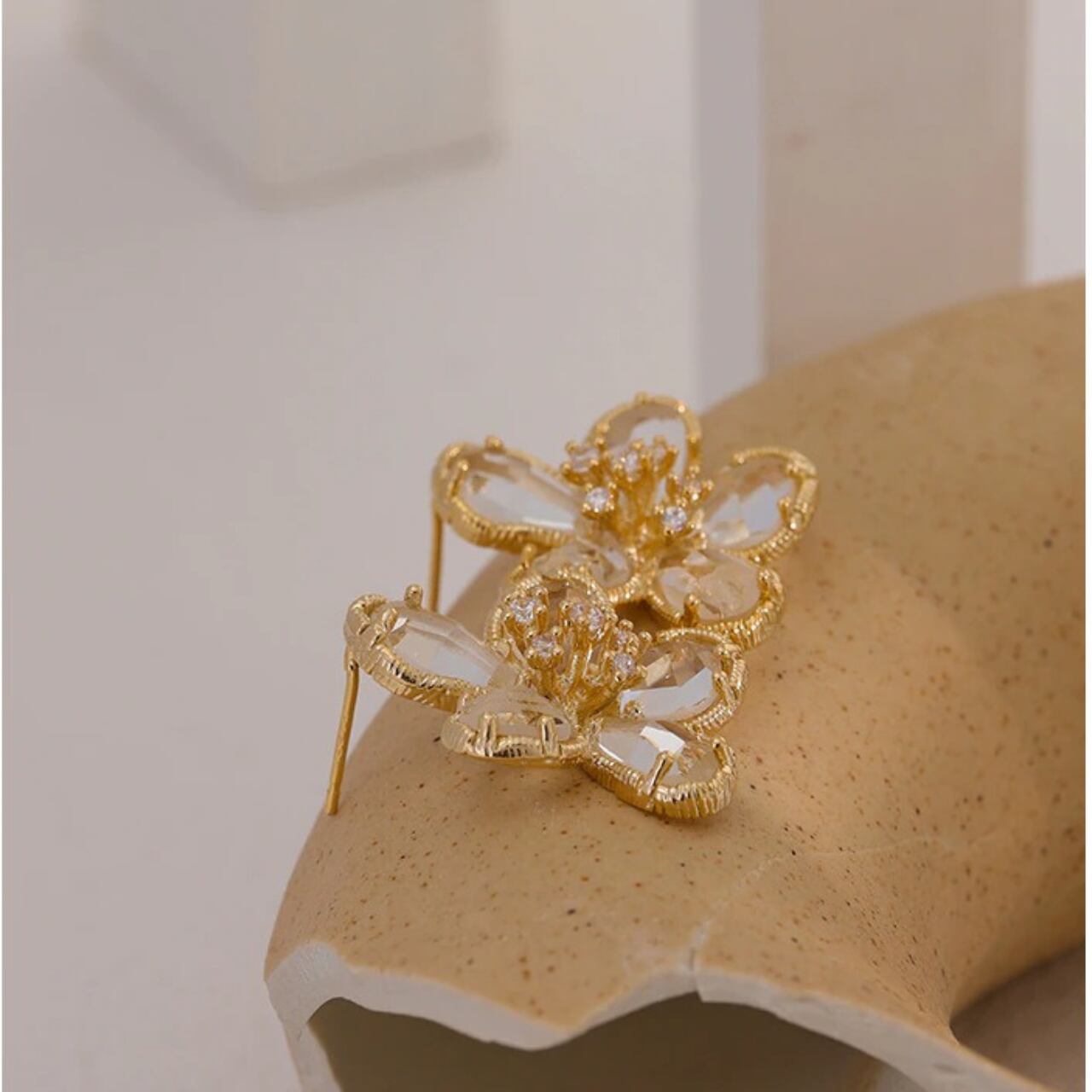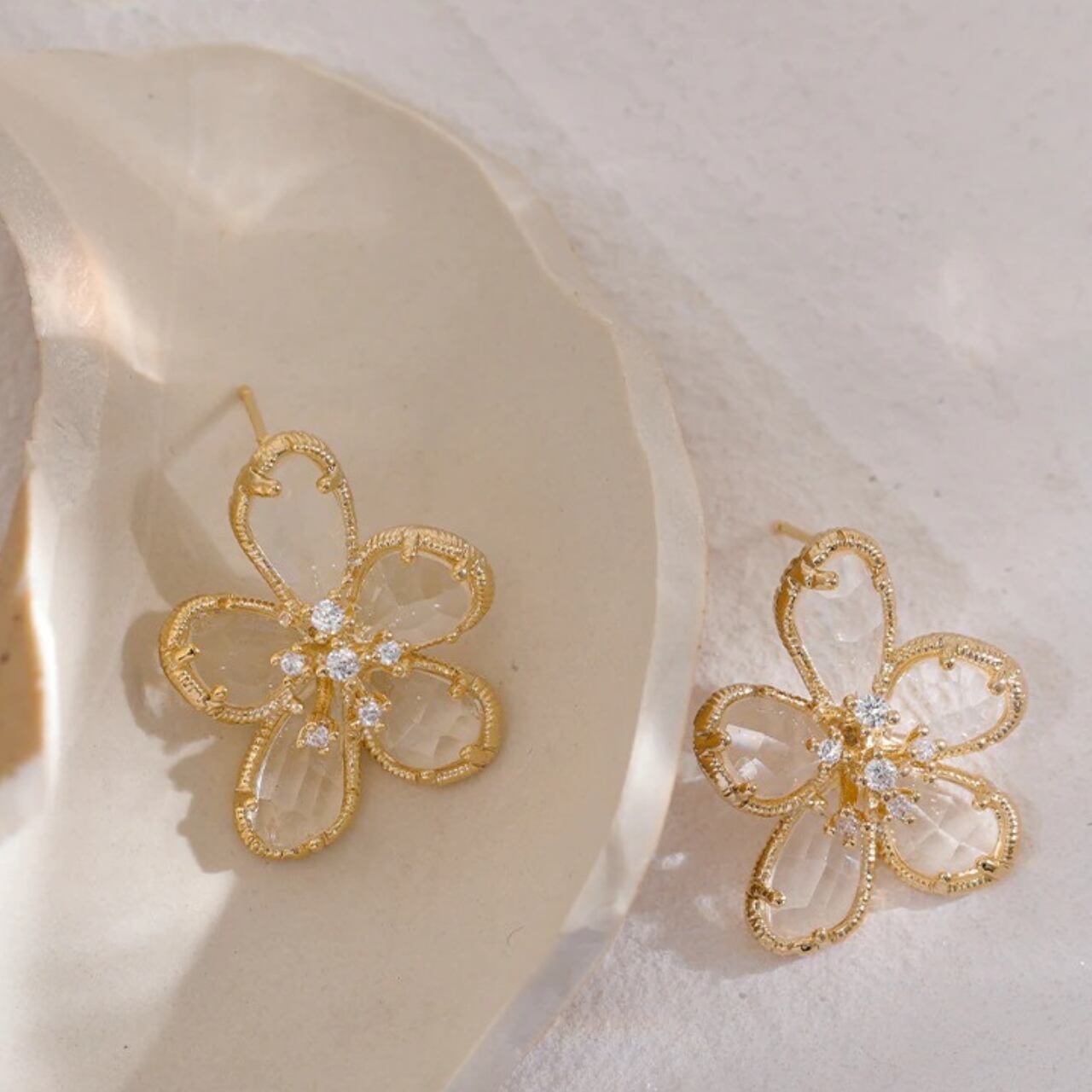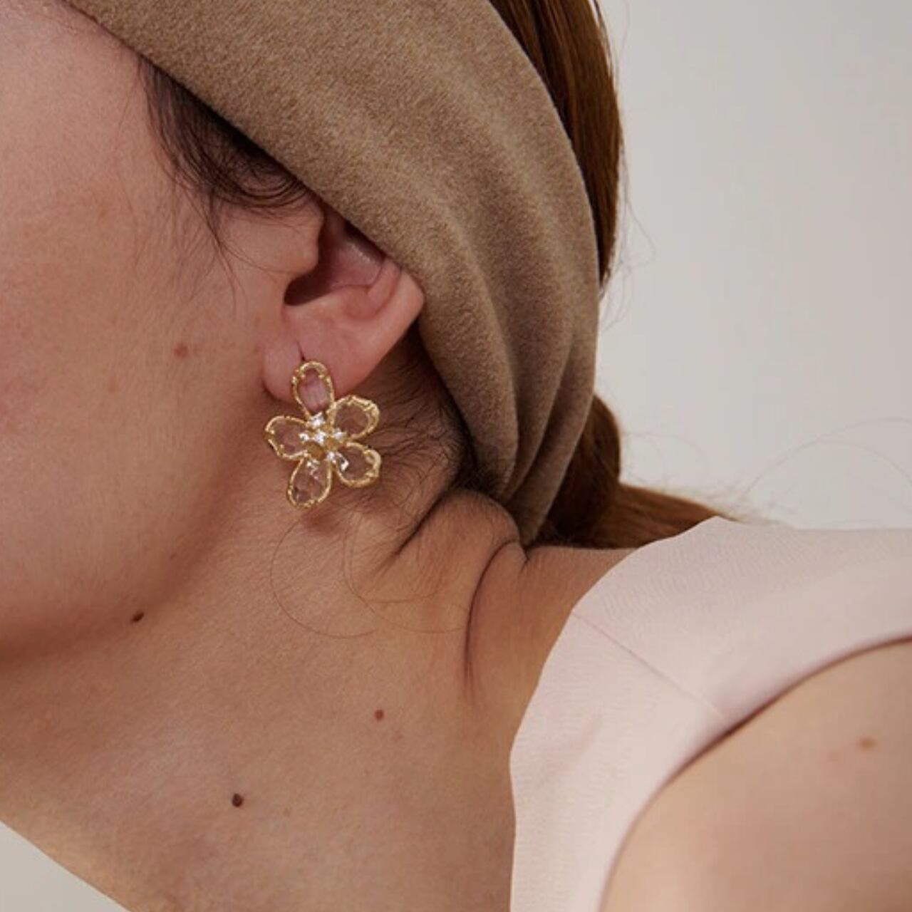 フラワーモチーフ型でもジルコニアがあしらわれ、子供っぽくならずエレガントに彩るアイテム。