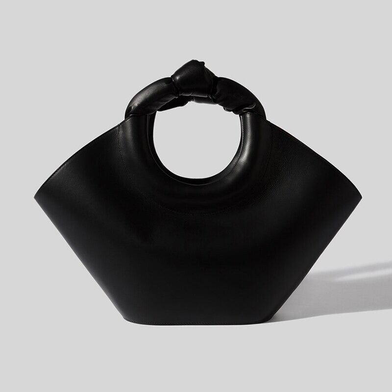 フープハンドルがアクセントになった、デザイン性あるトートバッグ。