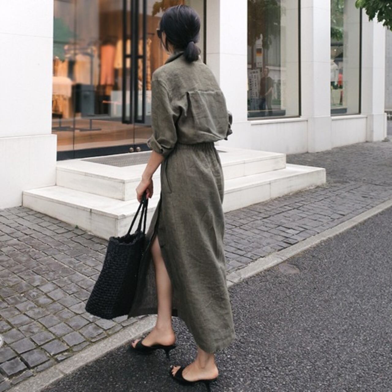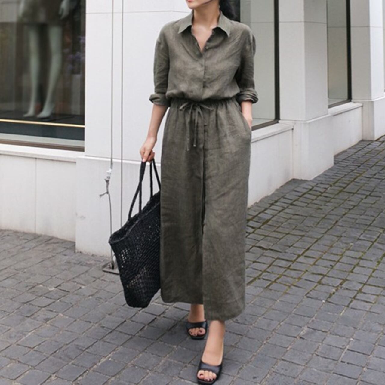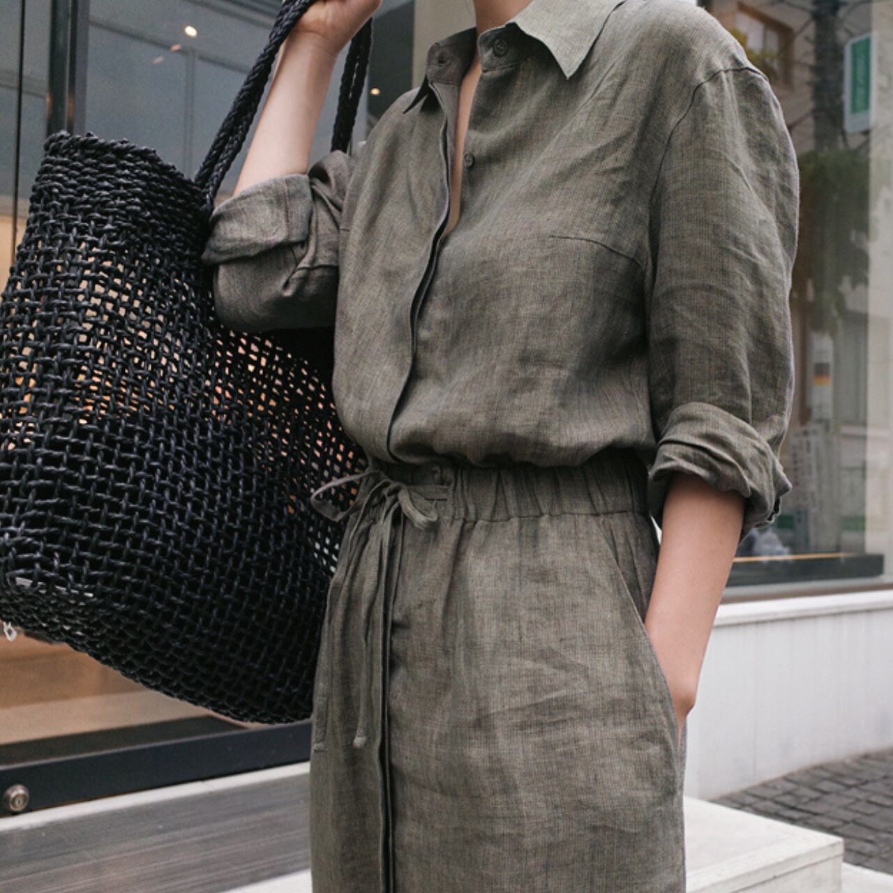 ラクな着心地と、ハンサムでスタイリッシュなスタイリングが叶う一着で、ロングシーズン活躍すること間違いなしのワンピースです。