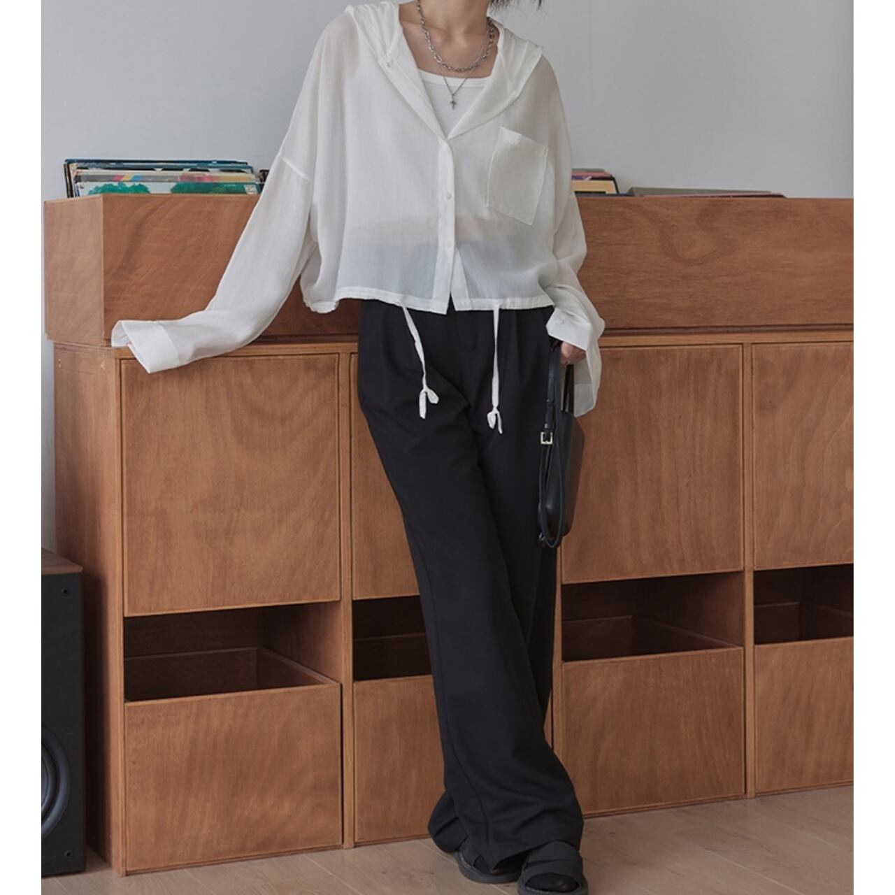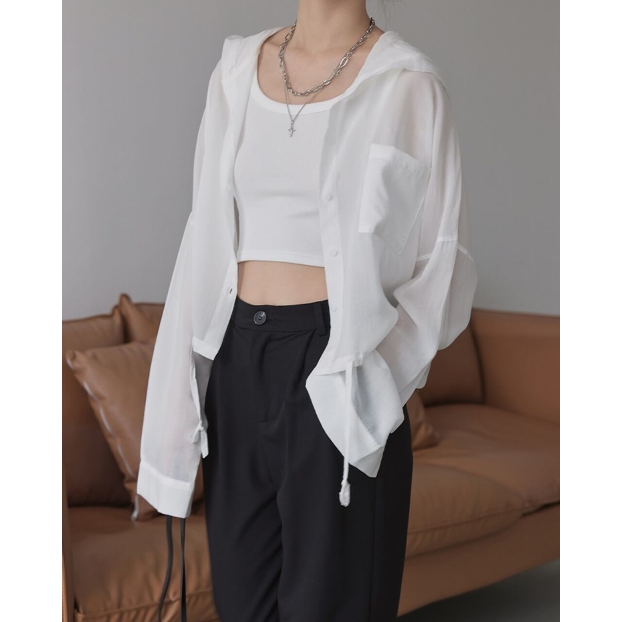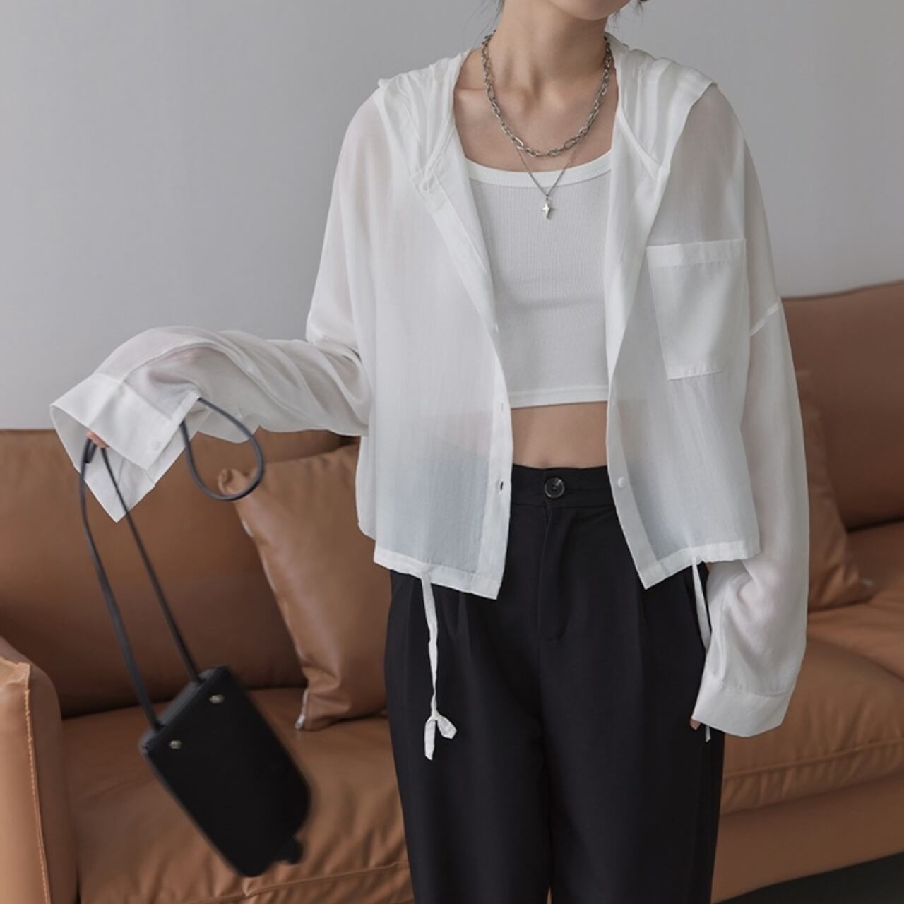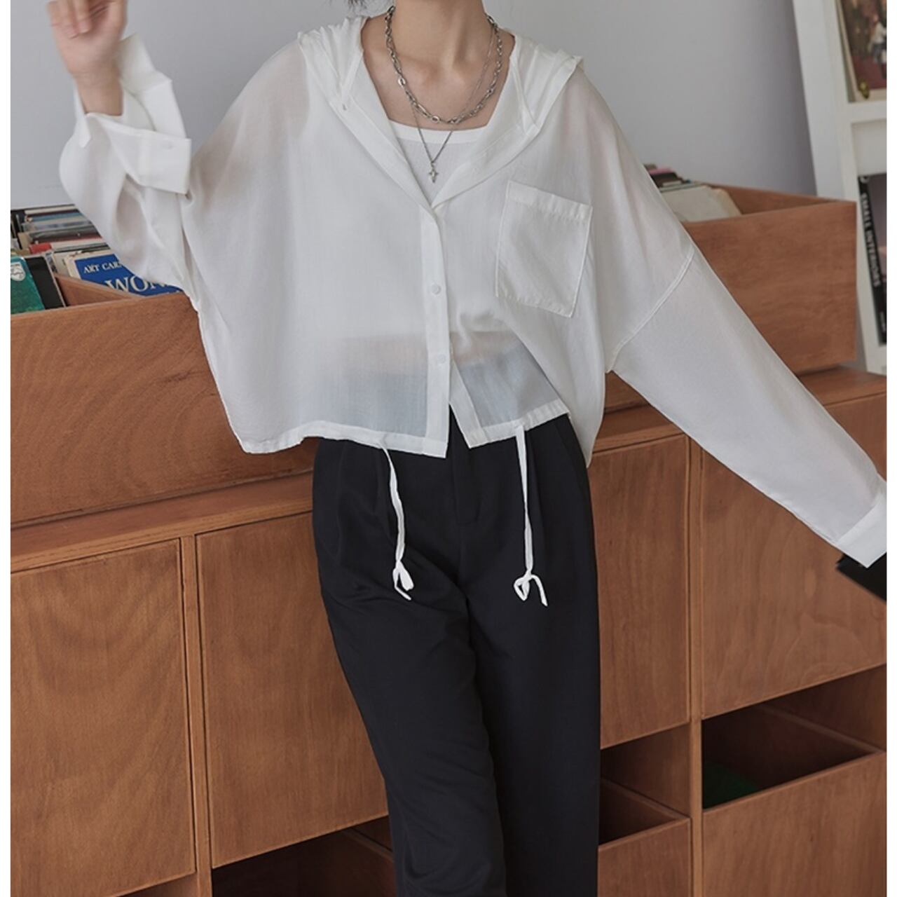 シアー素材とシンプルなデザインで、肌寒い時期などロングシーズン活躍するアイテム。