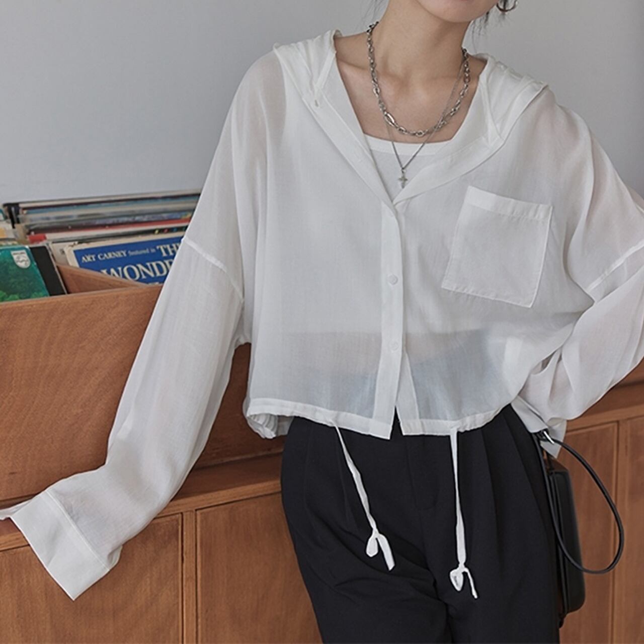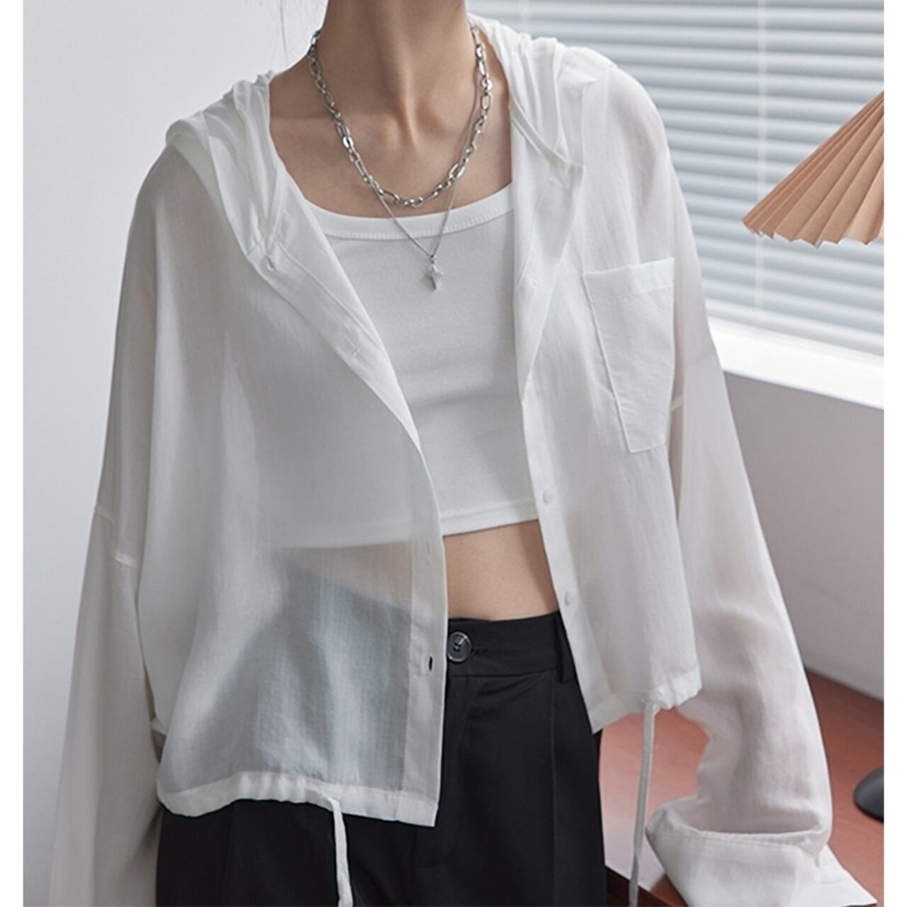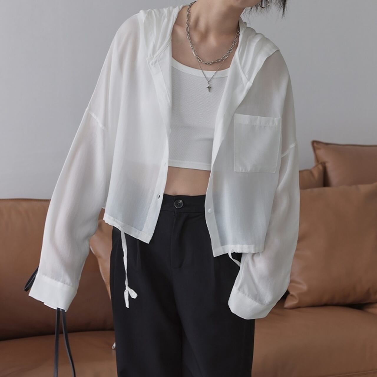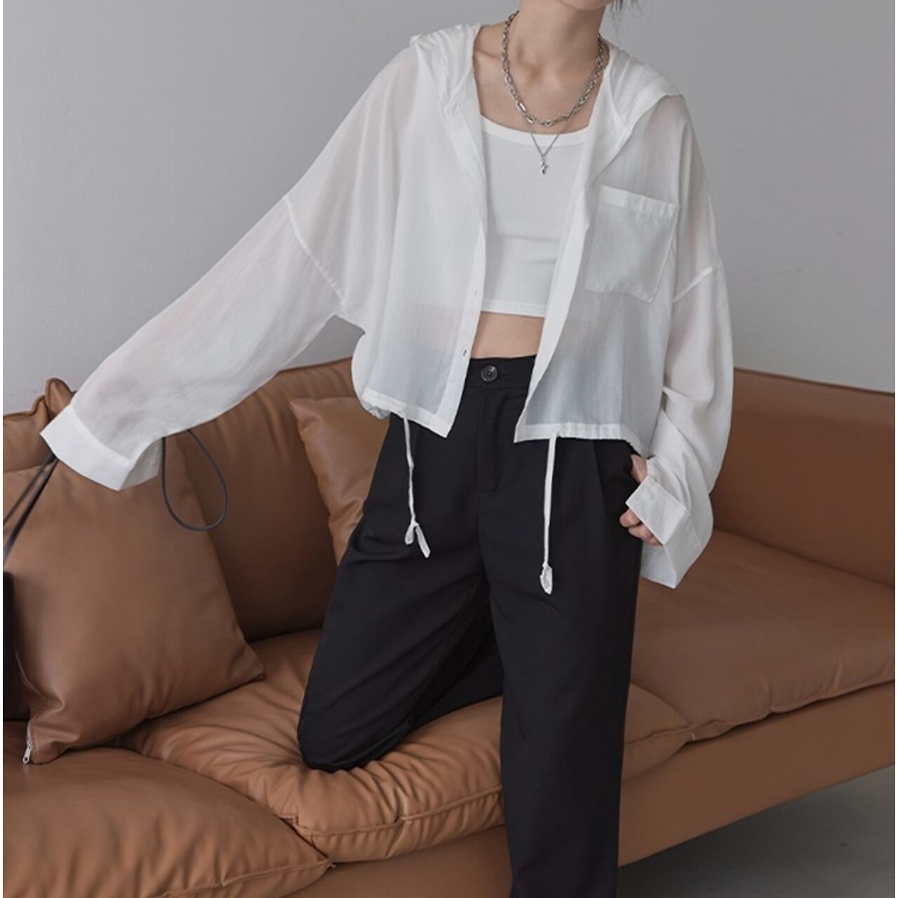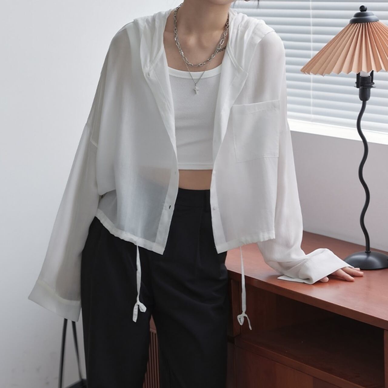 シアー素材とシンプルなデザインで、肌寒い時期などロングシーズン活躍するアイテム。