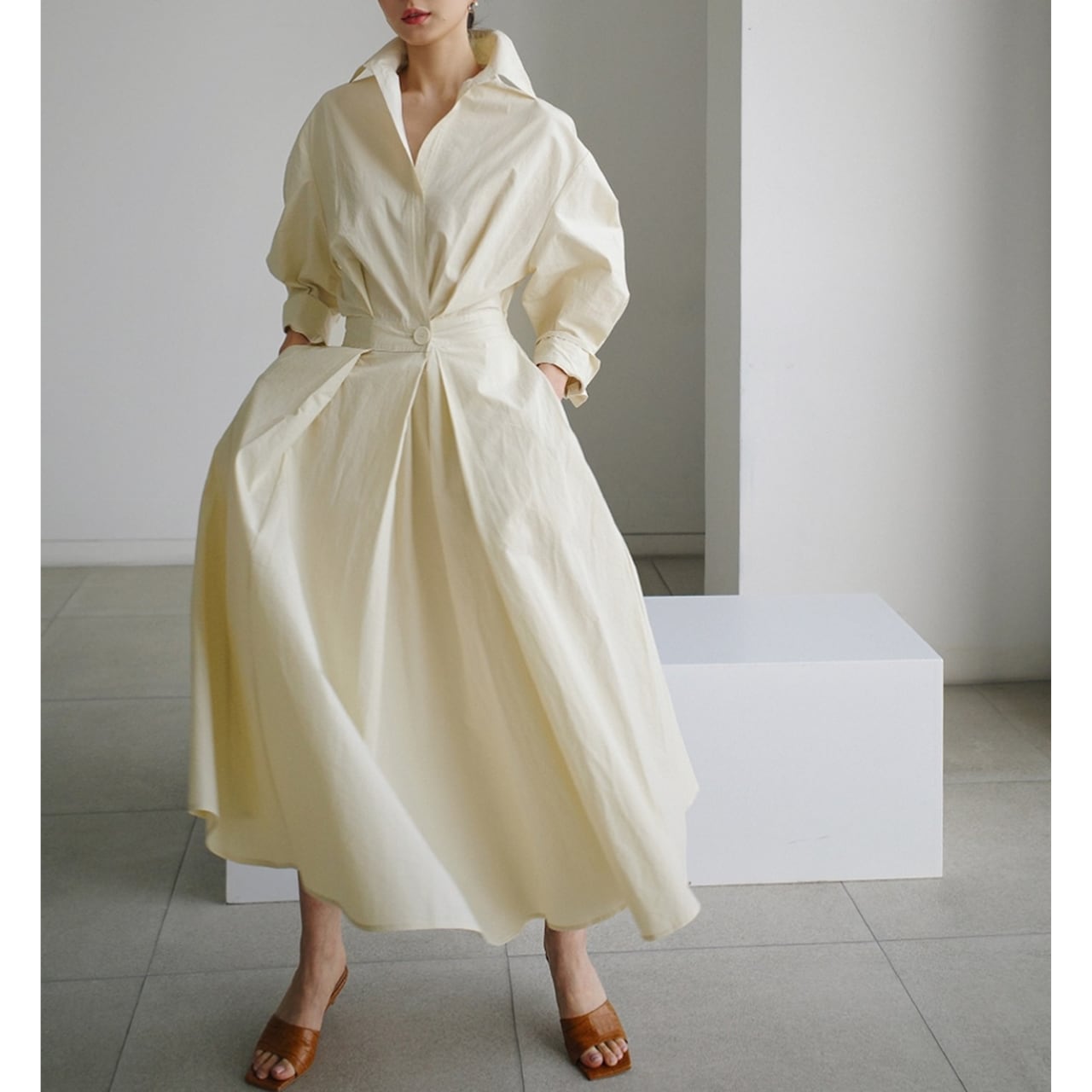 ウエストシェイプ効果で、これだけでエレガンスが完成する一枚。