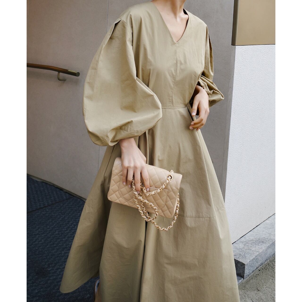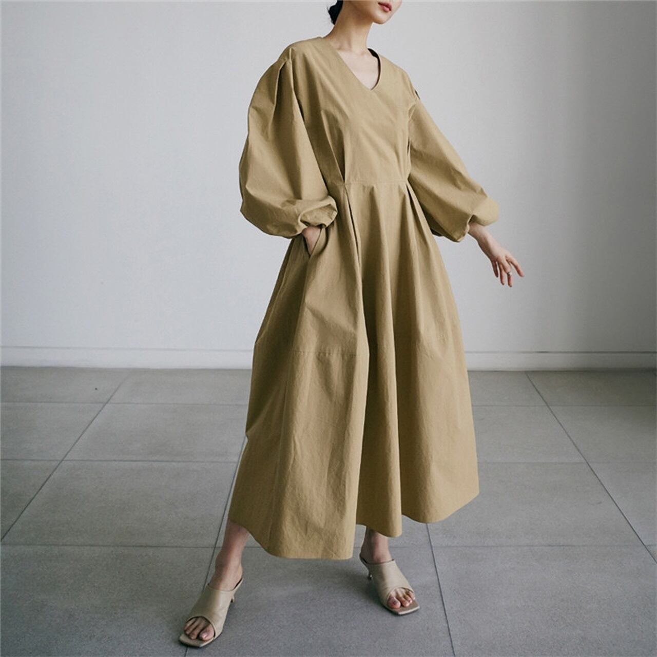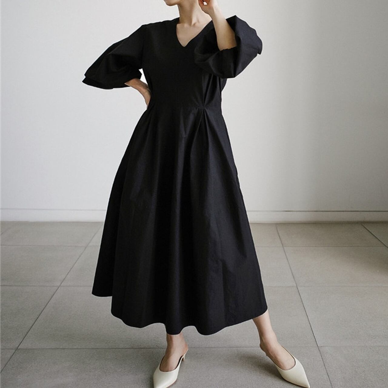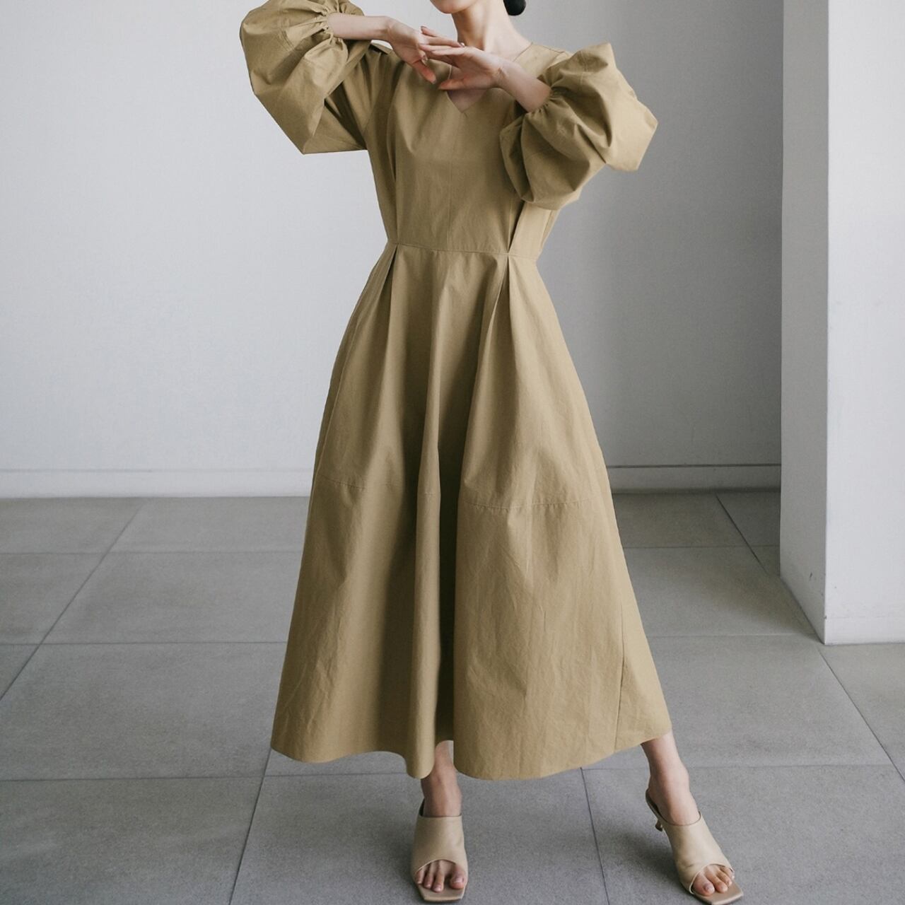 パフスリーブロングワンピース R00427