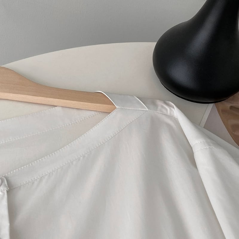 シンプルながらも、洗練されたデザインとボタンがアクセントとなり、この1枚でスタイリングが完成。