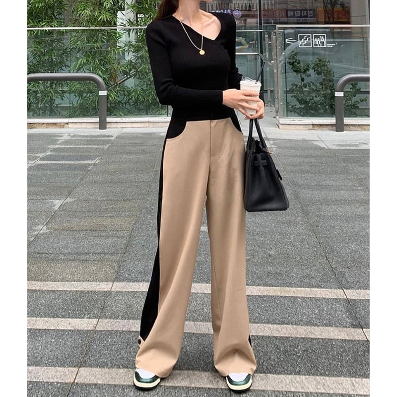 シンプルで合わせやすいベーシックなデザインに、ワイドめなラインがプラスされ、スタイリッシュなコーディネートを完成させてくれるアイテム。