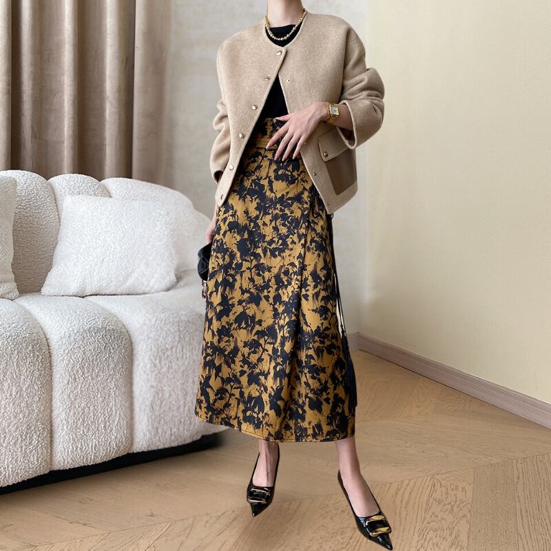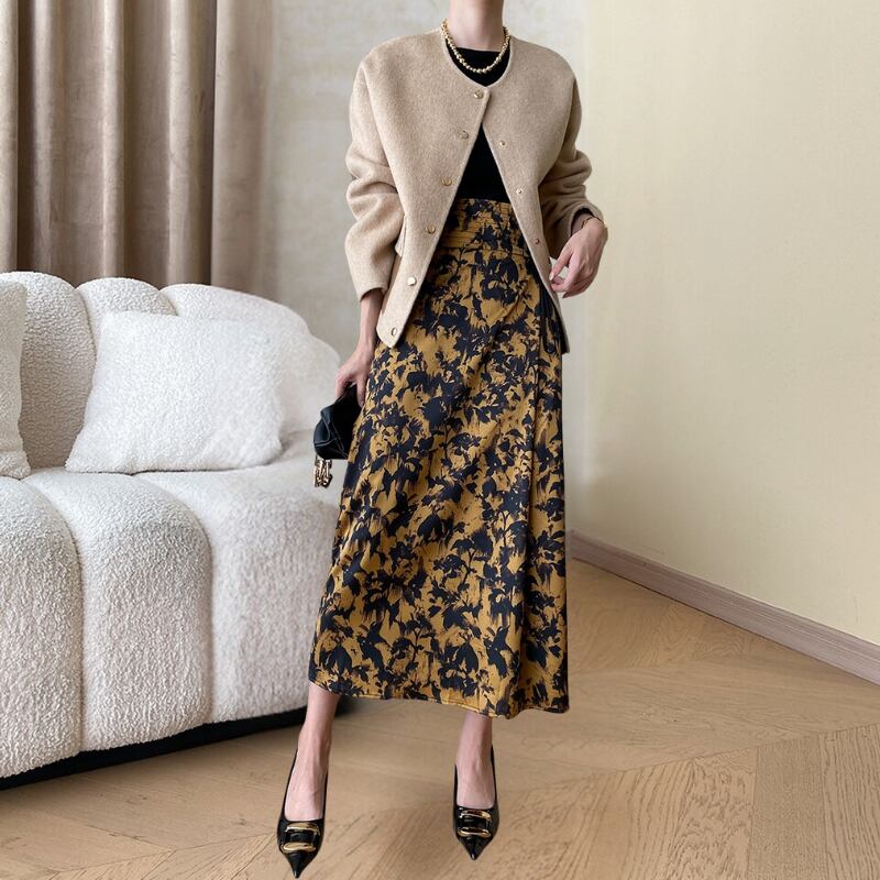 シンプルなトップスと相性が良く、この一枚で人目を引く洗練されたスタイリングが完成します。