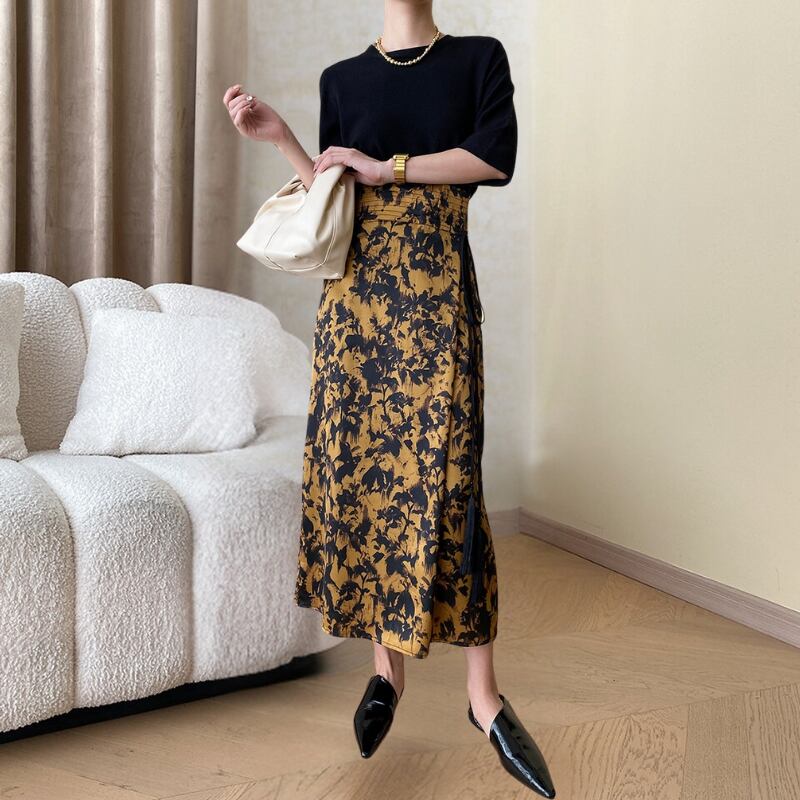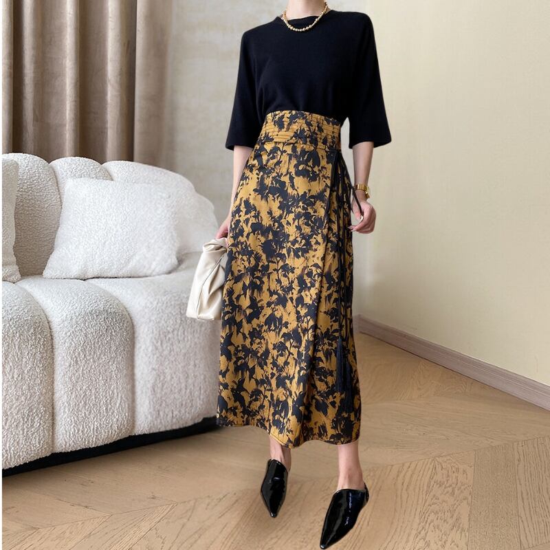 ハイウエストレトロプリントスカート R00624