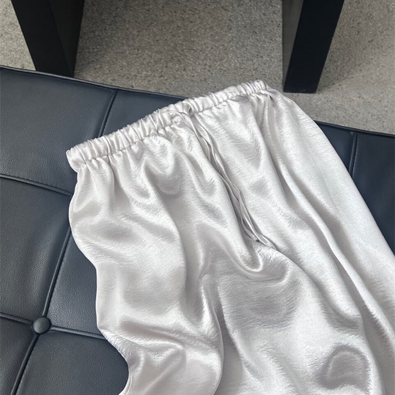 サテンのような光沢ある生地感で、スタイリングにスパイシーなアクセントをプラス。