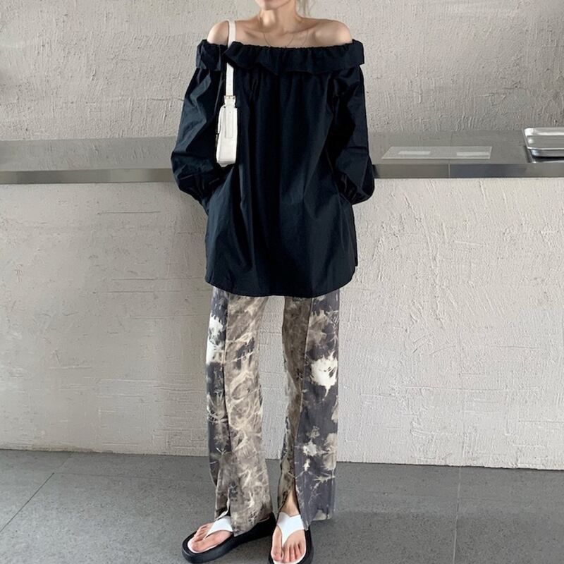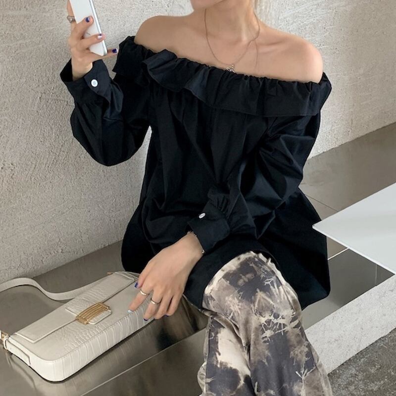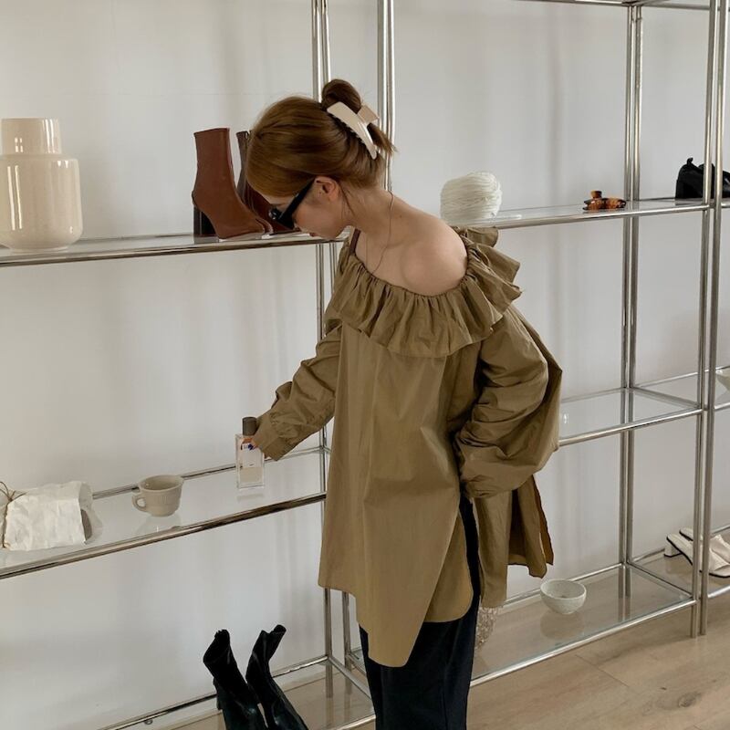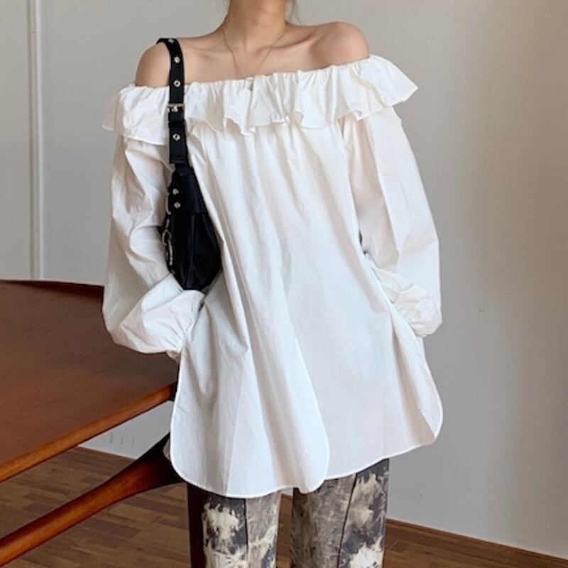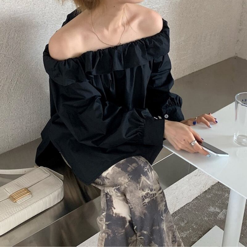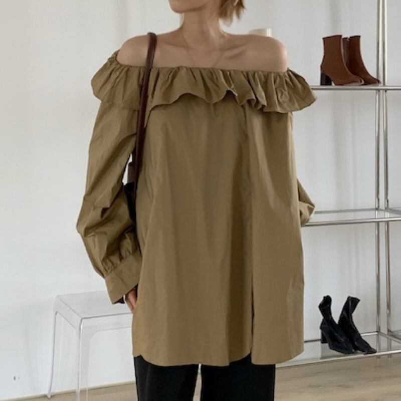 デコルテを美しく彩るオフショルダー、または甘めのフリルブラウスとして着用もOKな、2Way仕様のブラウス。