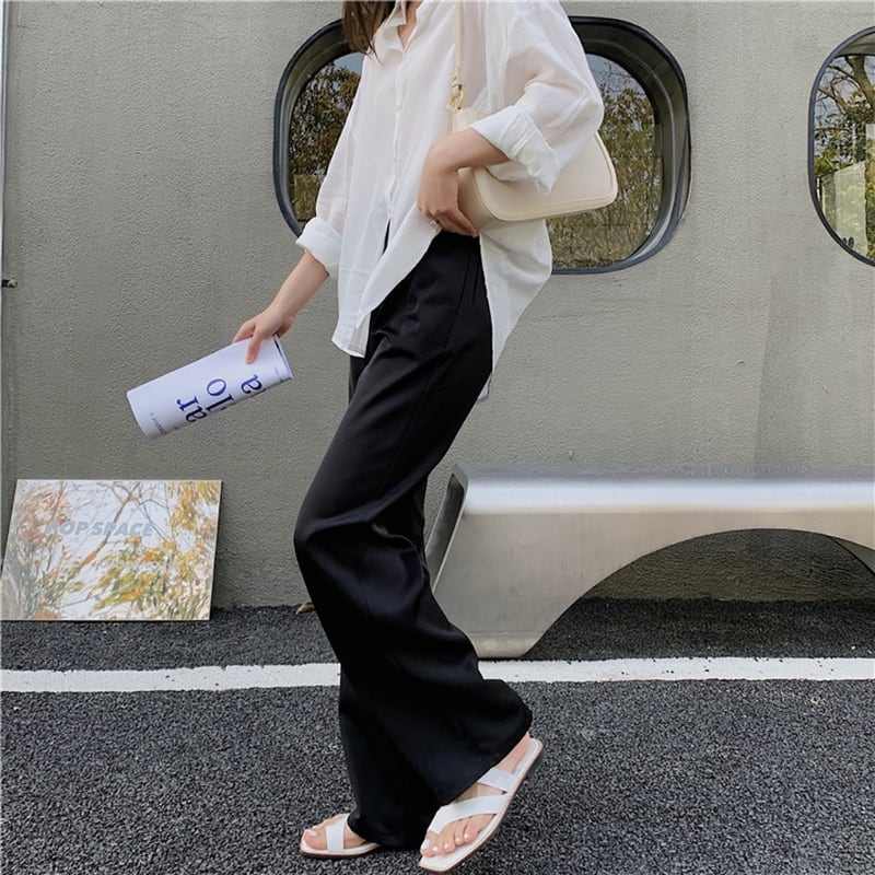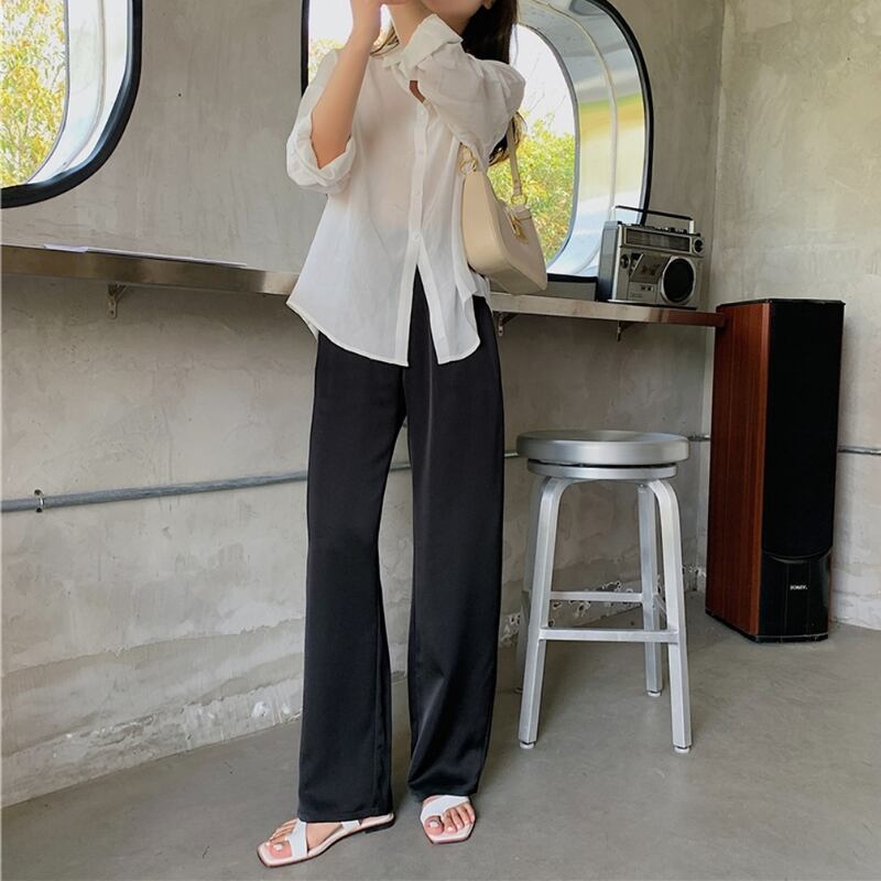 オフィスやタウンスタイルなど、シーンを選ばず使いやすいストレートなシルエットに、上品さを演出する生地感で、エレガントな雰囲気をプラス。