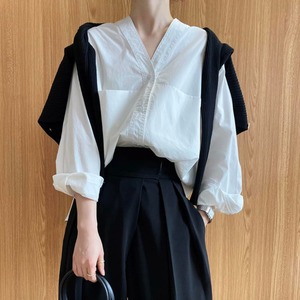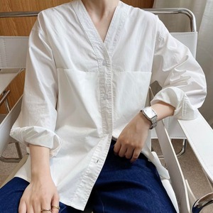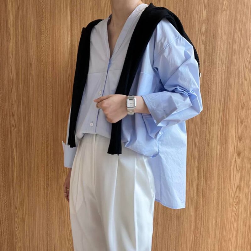 シンプルで着回し力抜群のベーシックなアイテム。 Vネックデザインが女性らしいデコルテラインを、ルーズなシルエットがリラックス感を演出します。 タウンスタイルはもちろん、ビジネスシーンにも、デイリーに活躍すること間違いなしの一枚です。 〈サイズ〉 M/ 肩幅:53cm/胸囲:120cm/ 袖丈:52cm/ 着丈:66cm L/ 肩幅:55cm/胸囲:124cm/ 袖丈:53cm/ 着丈:67cm ※海外での採寸方法により1-3cm程度誤差がある場合がございます。 〈素材〉 コットン 〈カラー〉 ホワイト ブルー ※ご購入前に必ずご確認下さい。 https://ec.rona-se.shop/about ---------- □ RONAの人気商品はこちら⇩ □ https://ec.rona-se.shop/categories/4800850 □ RONAのInstagramはこちら⇩ □ ☆☆☆フォローお待ちしております!☆☆☆ https://instagram.com/rona_se.shop □ RONAのトップページはこちら⇩ □ https://ec.rona-se.shop/ ---------- 【お届けについて】 こちらの商品は海外店舗よりお取り寄せとなります。 ご入金確認後「2週間~4週間」での発送となります。 なお、仕入先や時期によって発送までこの期間を超える場合がございます。 その場合はBlog等でご案内していますので確認下さいませ。 【注意事項】 ・流動性の高い商品を扱っているため、ご注文いただいた後、タイミングによっては商品在庫切れや生産中止により、代替え商品のご提案または注文キャンセルをご相談をさせていただく場合がございます。 その際は、メールでお知らせ致しますので、必ず受信できるメールをご登録頂きますようお願い申し上げます。 ・商品の色味は、お手持ちのPCやスマートフォンの画面によって実物と若干異なって見える場合がございます。 ・イメージ違いやサイズ違い等、お客さまご都合による返品・交換は受けつけておりません。 ・海外輸入製品の為、検査基準が日本と異なります。新品未使用品でもごくわずかな汚れや傷がある場合もございますが不良品ではございません。ご了承下さい。 ・買い付け先メーカーの商品リニューアルなどの変更に伴い、記載事項と若干の変更がある場合がございます。