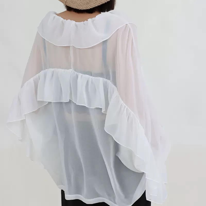 リラクシーな雰囲気漂うシアーフリルブラウス。