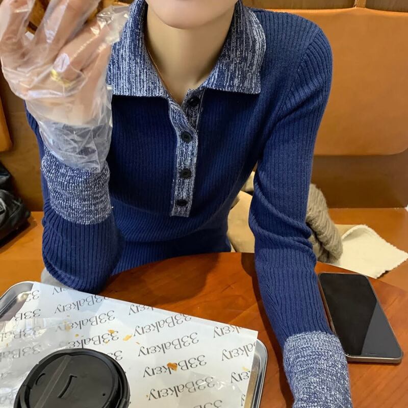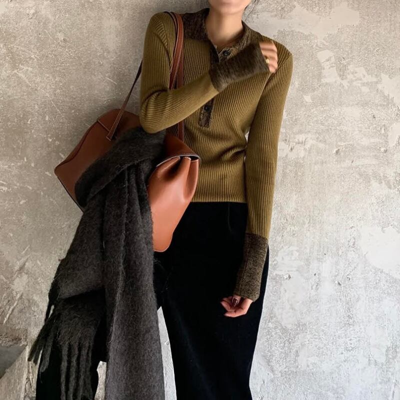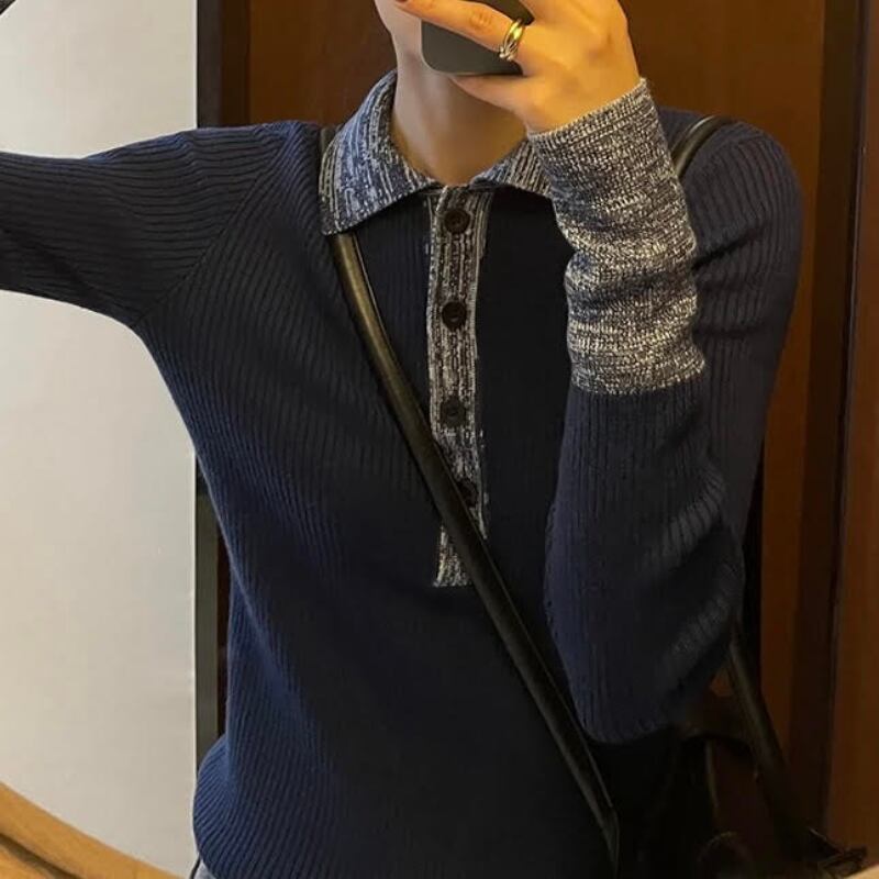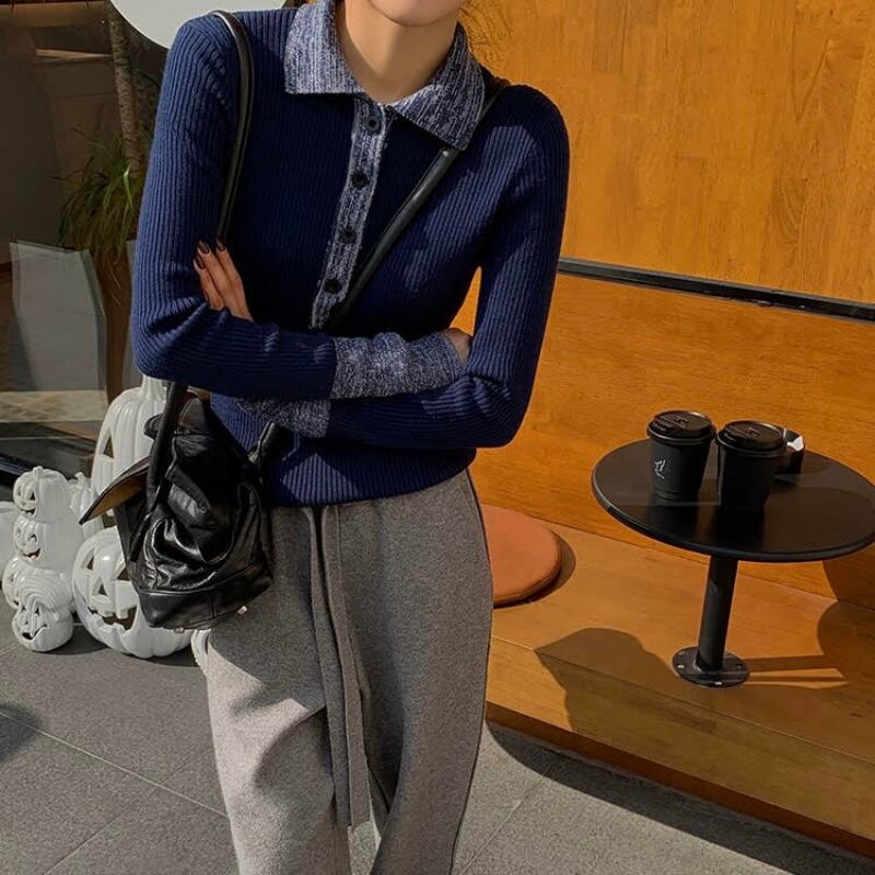 バイカラースリムポロニット R00950