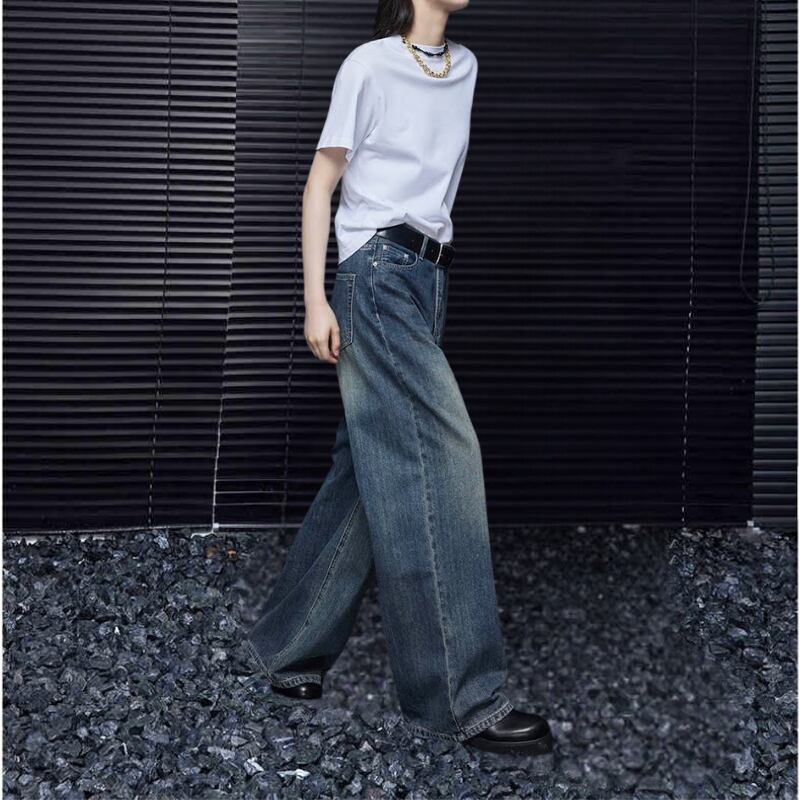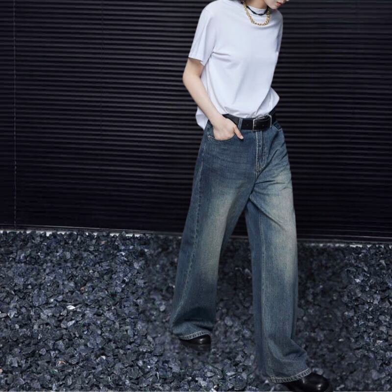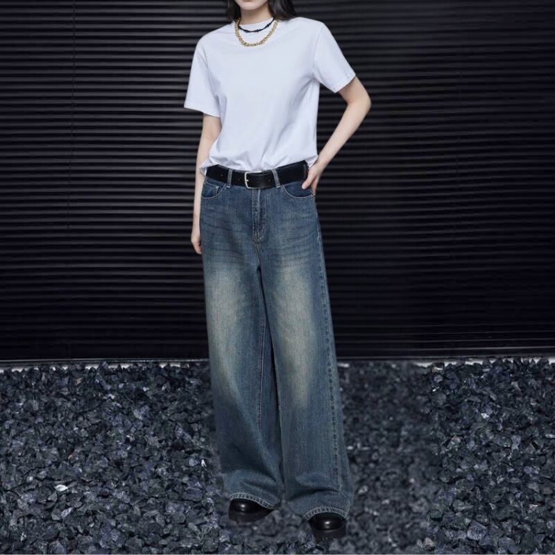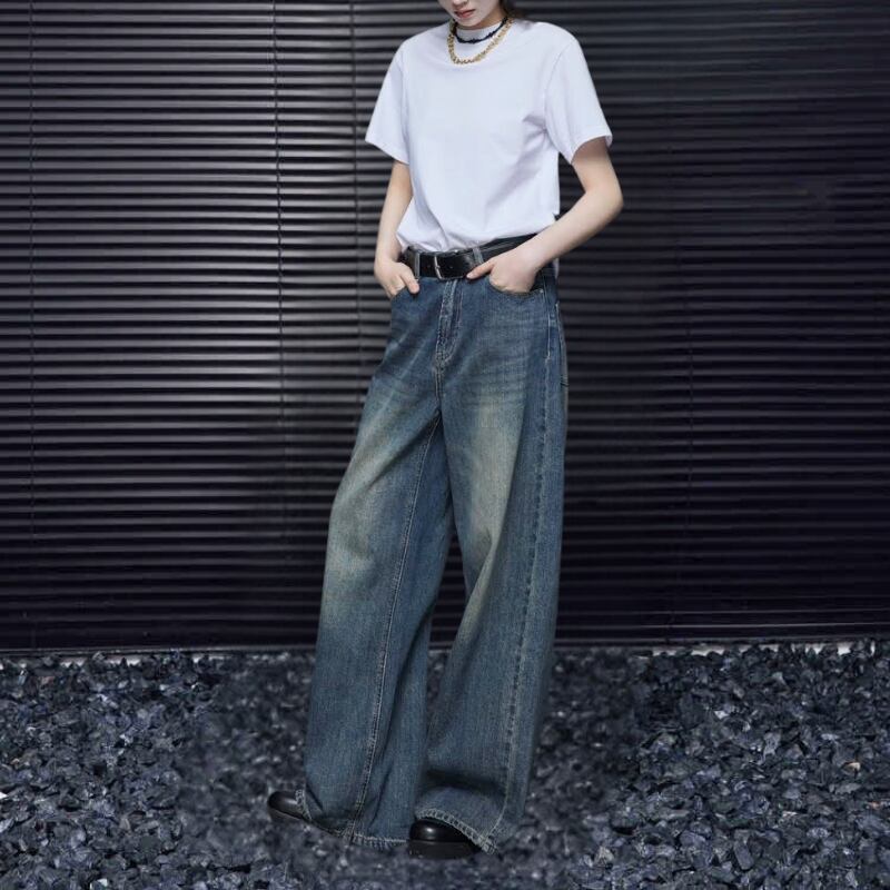 ルーズストレートワイドレッグストレートデニムパンツ R00973