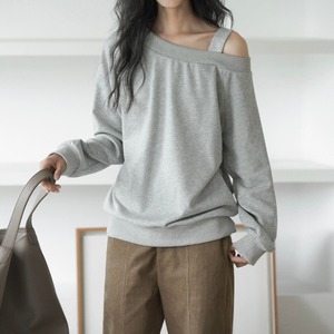 女性らしいオフショルダーのデザインを、リラックス感あるカジュアルなスウェット生地で、ヘルシーに女っぷりを演出。