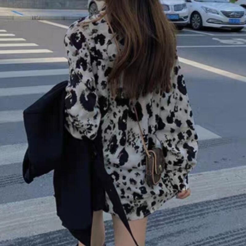 柄のサイズ感とカラーリングで、レオパード柄でもコーディネートをスタイリッシュな装いに。